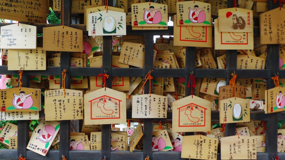 Historiquement le sanctuaire Kanayama est investi par les forgerons et les prostituées qui peuplent les alentours. Les uns viennent y prier pour la sécurité et la pérennité de leur business, les autres pour s’assurer une protection contre les maladies. Avec le temps, le sanctuaire s’est spécialisé dans la fertilité : on vient y prier pour une belle descendance ou pour éviter les fausses couches. Lorsque l’on y passe rapidement, le sanctuaire n’a rien d’exceptionnel, mais si on prend le temps de l’explorer de plus près, on est surpris de tomber sur des enclumes de forgeron, des phallus en pierre et des plaques votives très explicites.